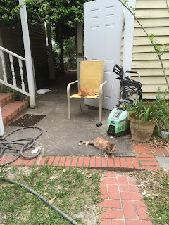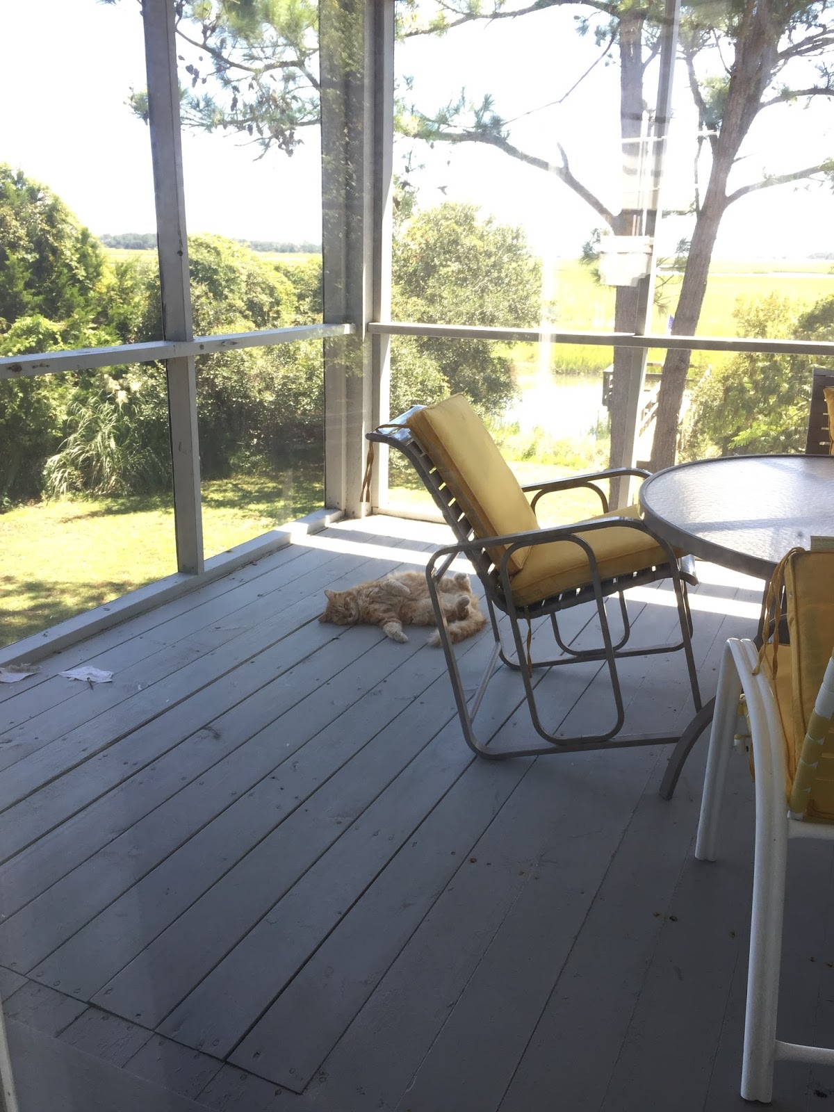 Back on the marsh, things are good. There will be no more outdoor roaming for either cat. Both Orange Guys spend almost all day on the screened porch, and seem to find it acceptable.