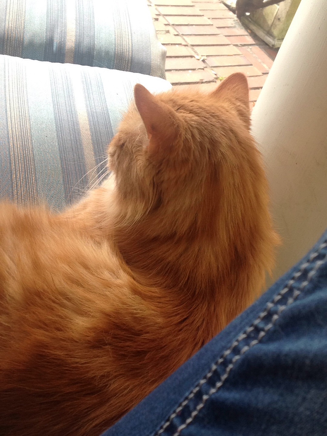 To give her time with her humans meant to leave the orange boys alone. Downy would sit in the kitchen watching us through the glass door that kept us all apart.